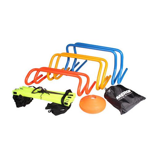 Merco Advantage Kit agility készlet segít javítani az agilitást, a sebességet, a reakcióidőt és az erőt bármilyen sportág edzése során. Nemcsak teljesítménysportolók és edzők, hanem testnevelő tanárok, gyermekjátszócsoportok vagy nyári gyermektáborok vezetői is megbízhatóan használhatják. A Merco Advantage Kit agility készlet a leghasznosabb és bevált segédeszközöket tartalmazza a minőségi és összetett agilitási edzéshez vagy mozgásos játékokhoz. A készlet kezelése nagyszerű. Minden eszköz egy praktikus táskában található, amelyben könnyen magaddal viheted őket a pályára, és edzés után visszacsomagolhatod. A csomag, a táskával együtt, mindössze 5,5 kg súlyú. A Merco Advantage készlet tartalma: - összesen 6 db könnyű műanyag akadály: - 2 db 15 cm magas - 2 db 22 cm magas - 2 db 30 cm magas, - az összes akadály szélessége 44 cm - 12 db műanyag korongjelölő, 18,5 cm átmérővel és 5 cm magassággal - 1 db 6 m hosszú, 44,5 cm széles és 16 műanyag létra - 1 db 90 cm átmérőjű futóejtőernyő 75 cm hosszú pánttal és tépőzáras derékpánttal - táska méretei: Sz x H x M: 31 x 59 x 28 cm. A teljes készlet súlya: 5,5 kg