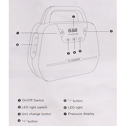 Az Air Car multifunkcionális kompresszor praktikus autós kiegészítővé válik. A kompresszornak köszönhetően bármikor felfújhatod a gumikat szükség szerint, de a mellékelt adaptereknek köszönhetően könnyedén felfújhatsz sportlabdákat, gimnasztikai labdákat vagy akár egy kerékpárt is. Két különböző kábellel a kompresszort 220 V-os aljzatba vagy az autóban lévő aljzatba is csatlakoztathatod. A kompresszor oldalsó LED lámpával is rendelkezik, három világítási/villogási móddal. Paraméterek: Anyag: ABS Teljesítmény: 35L/perc; 120W Nyomás: 150 PSI Cső hossza: 60 cm Méretek: 19 x 18 x 9 cm Tömeg: 0,96 kg Bemeneti feszültség; 12V/100-230V, 120W Nyomás mértékegység átváltás: KG/CM2, BAR, KPA, PSI Praktikus fogantyú Oldalsó LED lámpa Figyelmeztetés: A kompresszort gyermekek nem használhatják felnőtt felügyelete nélkül. Ne használd a kompresszort közvetlen napfényben vagy magas hőmérsékleten. Ne használd a kompresszort esőben. Száraz helyen, szobahőmérsékleten tárolandó. Ne használja a kompresszort folyamatosan 10 percnél tovább. Kapcsolja ki a kompresszort 30 percre, mielőtt újra használná.