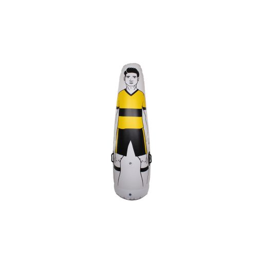 A Merco Air Dummy-t számos kollektív sport játékhelyzetének edzésére tervezték. Kiváló kiegészítő például a futballedzésekhez és a büntetőrúgások javításához. A felfújható próbabábu 100% PVC-ből készült, játékos kialakítású. Az edzésfigura könnyen tárolható, és minimális a sérülésveszély, ha valódi játékos érintkezik vele. A nagyobb stabilitás érdekében a próbabábu alapja vízzel vagy finom homokkal tölthető. Ezért fontos, hogy a Merco Air Dummy-t csak 5 °C feletti hőmérsékleten használja, hogy a víz ne fagyjon meg. A felfújt próbabábu magassága 175 cm, az alap átmérője 50 cm, súlya víz nélkül 1,65 kg. Ha focizik, kosárlabdázik, kézilabdázik vagy bármilyen más közös sportot űz, és fejleszteni szeretné edzéseit, vásárolja meg a Merco Air Dummyt egy minőségi edzéshez.