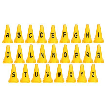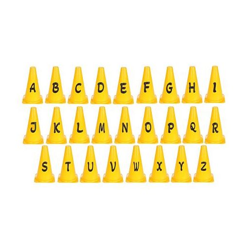 26 db-os, betűkkel ellátott bójakészlet az edzőpálya jelölésére vagy didaktikai segédeszközként.