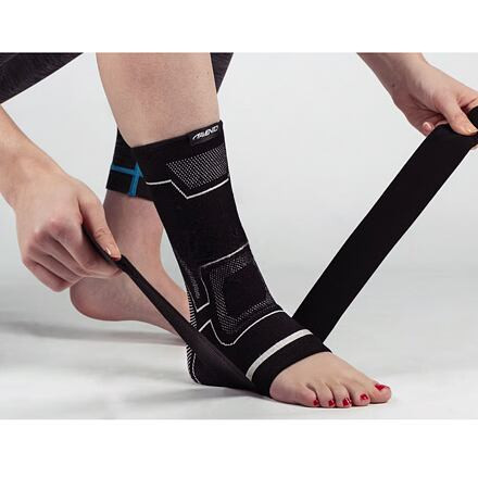 Puha, könnyű és kompressziós anyagból készült bokatámasz. Rugalmas stabilizáló pánttal.