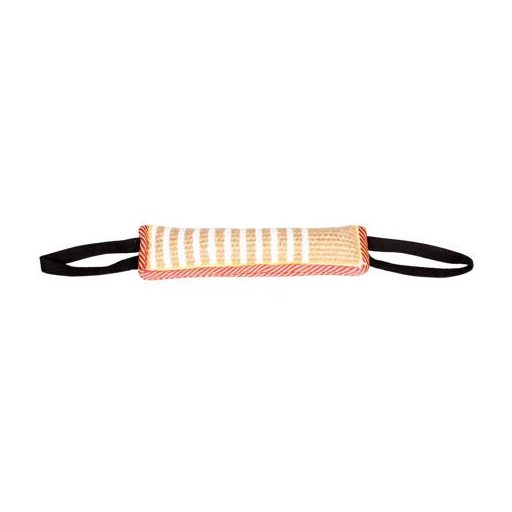 A 30 x 7 x 4 cm méretű Bark harapópálca nagyszerű módja kutyája szórakoztatásának. Ez a pálca nagyobb fajták számára is alkalmas. Pamutból és lenből készült, így nagyon erős. Mindkét végére fűzőlyukak vannak varrva. Dobja fel a napi kutyájával tett sétáit ezzel az eszközzel.