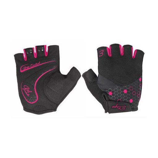 Női kerékpáros kesztyű rugalmas anyagból. Tenyérrészen GelPro béléssel és csúszásgátló bevonattal.