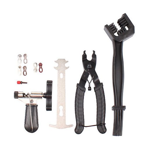 A Merco 7-es lánckészlete kerékpárláncok szervizelésére és cseréjére szolgál. A csomag összesen 7 szükséges segédeszközt tartalmaz. A lánc egyszerű cseréjéhez és leválasztásához gumírozott fogantyújú gyorscsatlakozókhoz való fogót is tartalmaz. Maguk a gyorscsatlakozók három változatban találhatók a csomagban: 9S, 10S és ►. Ha még nincs gyorscsatlakozó a láncán, akkor mindenképpen szüksége lesz egy szegecshúzóra a leválasztásához. A lánc rövidítéshez vagy cseréhez való csatlakoztatásakor gyorscsatlakozók vagy vadonatúj menet használatát javasoljuk. Hogyan ismerhető fel a nagyon kopott lánc? Alapmérleg használatával. Miután a mérleg illeszkedik a láncba, itt az ideje lerövidíteni a láncot vagy újat venni. A gyümölcsösben végzett, éghajlatilag igényesebb séták esetén egy univerzális kefét is talál, amellyel a nehezen elérhető helyekhez is hozzáférhet. A csomag tartalma: gyorscsatlakozókhoz való fogó, szegecs, gyorscsatlakozók, alapmérleg, kefe.