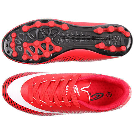 Cleats Man nevű focicipő a legkönnyebb és leggyorsabb focicipők közé tartozik. A legmodernebb gyártási technológiákat alkalmazták, amelyek lehetővé teszik a könnyű cipőszerkezetet kiváló játékélmény mellett. A cipő súlya mindössze 220 gramm (42 euró). A cipő felsőrésze poliuretán (PU) bevonattal van ellátva a jobb vízállóság érdekében. Védi a lábat a külső behatásoktól is. A cipő belső része ergonomikus formájú betétből készült, amely megfelelő kényelmet biztosít. Az ergonomikusan formázott EVA habból készült talpbetét számos lyukkal rendelkezik, amelyek célja a légáramlás biztosítása, így a láb lélegzése is biztosított. Ez a kidolgozás a lehető leghosszabb ideig szárazon tartja a lábat. A cipő külső talpa DMX technológiával van felszerelve. A belső középtalpban két légzsák található, amelyek diszkréten helyezkednek el a lábujjak és a sarok között, és átjárón keresztül kapcsolódnak egymáshoz. Járás közben a levegő a sarokrészből a lábujjak részébe áramlik. A levegő minden lépésnél az egyik kamrából a másikba mozog, a tempónak megfelelően. A belső talp kidolgozása könnyű hajlást és sima előrehaladást biztosít. A külső, kopásálló talp stratégiailag elhelyezett 10 mm hosszú bordákkal van ellátva. Ezek lehetővé teszik a stabil mozgást száraz és nedves füvön egyaránt. A Cleats Man cipőket azoknak a játékosoknak tervezték, akik minden szezonban gyorsabbak szeretnének lenni, gyorsabbak, mint ellenfelük. EU 34 = 21,5 cm (lábhossz) EU 35 = 22,1 cm EU 36 = 22,7 cm EU 37 = 23,4 cm EU 38 = 24 cm EU 39 = 24,7 cm EU 40 = 25,4 cm EU 41 = 26 cm EU 42 = 26,7 cm EU 43 = 27,4 cm EU 44 = 28 cm