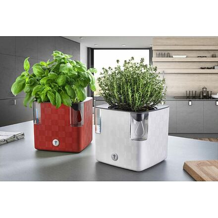 Cobble önöntözős dizájn virágcserép ideális gyógynövények és növények otthoni termesztéséhez. A tartós műanyagból készült virágcserép magassága 14 cm, szélessége 14,5 cm. A virágcserép behelyezésére szolgáló lyuk átmérője 12 cm (10-12 cm felső átmérőjű virágcserepek ültetéséhez alkalmas). A nedvesség fokozatosan jut a növényekhez az Aqua System öntözőrendszernek köszönhetően - az alsó tartályból a víz két textil kanóccal (amelyek a csomag részét képezik) jut a magcserépbe. Ugyanakkor nem közvetlenül felülről önti a vizet a virágcserépbe, hanem oldalról az öntözőnyílásba. A virágcserép következő sarkában egy vízmennyiség-jelzővel ellátott vonal található. Ha a virágcserepet a falra vagy az erkély korlátjára szeretné függeszteni, vásárolhat egy Cobble virágcserép tartót, amelyet kifejezetten ehhez a típusú virágcseréphez terveztek. Szükség esetén csere öntözőkanócokat is kínálunk a Cobble cseréphez.