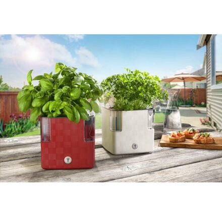 Cobble önöntözős dizájn virágcserép ideális gyógynövények és növények otthoni termesztéséhez. A tartós műanyagból készült virágcserép magassága 14 cm, szélessége 14,5 cm. A virágcserép behelyezésére szolgáló lyuk átmérője 12 cm (10-12 cm felső átmérőjű virágcserepek ültetéséhez alkalmas). A nedvesség fokozatosan jut a növényekhez az Aqua System öntözőrendszernek köszönhetően - az alsó tartályból a víz két textil kanóccal (amelyek a csomag részét képezik) jut a magcserépbe. Ugyanakkor nem közvetlenül felülről önti a vizet a virágcserépbe, hanem oldalról az öntözőnyílásba. A virágcserép következő sarkában egy vízmennyiség-jelzővel ellátott vonal található. Ha a virágcserepet a falra vagy az erkély korlátjára szeretné függeszteni, vásárolhat egy Cobble virágcserép tartót, amelyet kifejezetten ehhez a típusú virágcseréphez terveztek. Szükség esetén csere öntözőkanócokat is kínálunk a Cobble cseréphez.