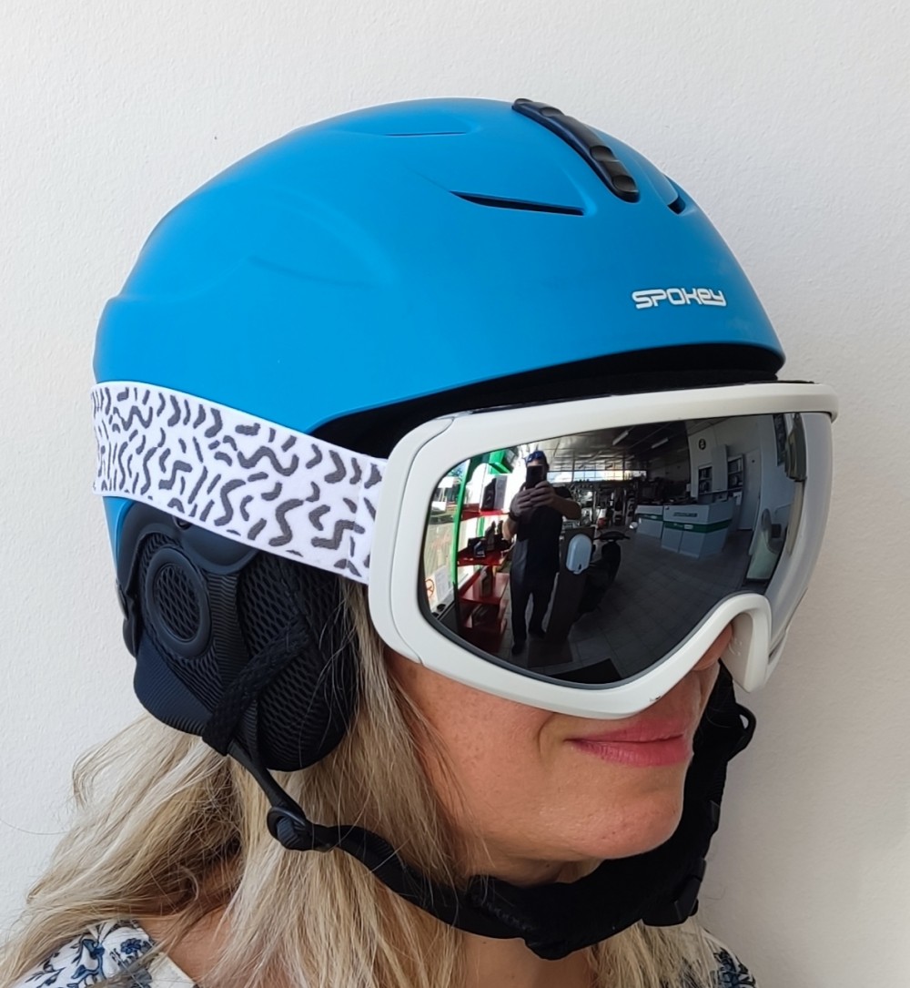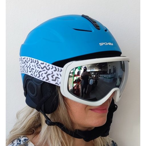 - Fehér síszemüveg keret, szürke tükrös lencsével