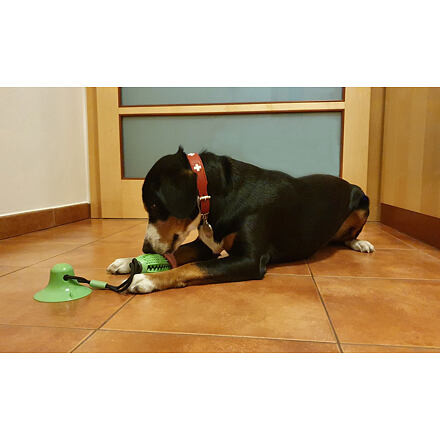 Többcélú kutyajáték tapadókoronggal. A játék granulátummal vagy jutalomfalattal tölthető.