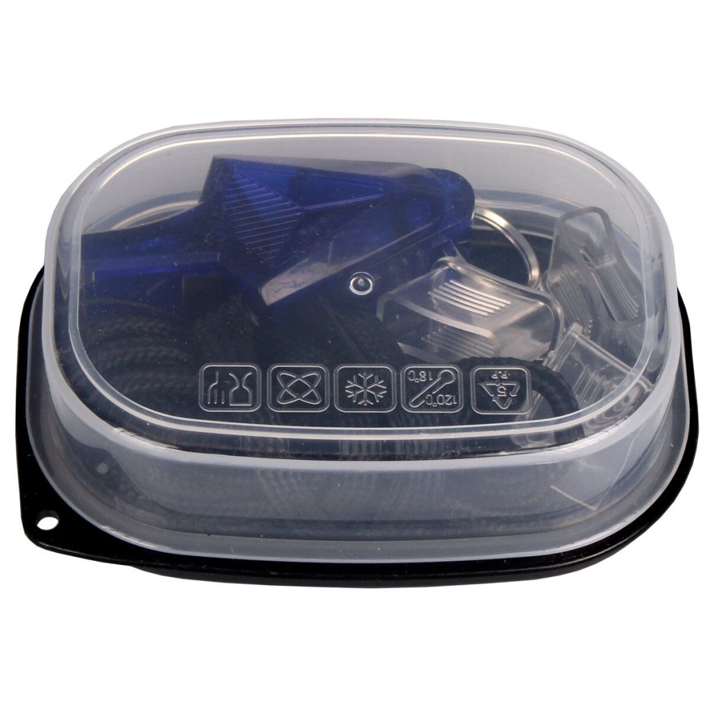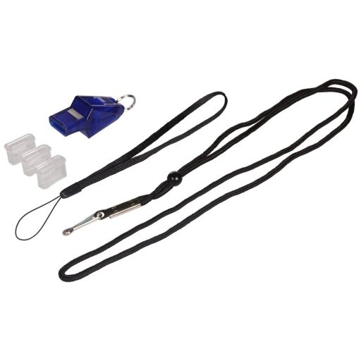 The lightweight plastic whistle Merco Dolphin with a loud sound will be used by referees during matches, coaches, or instructors of children's sports groups. The whistle made of ABS plastic is delivered in a practical plastic box, including one longer adjustable cord around the neck, one shorter one for the wrist and three silicone mouthpieces. - size: 5 x 2.5 x 2 cm