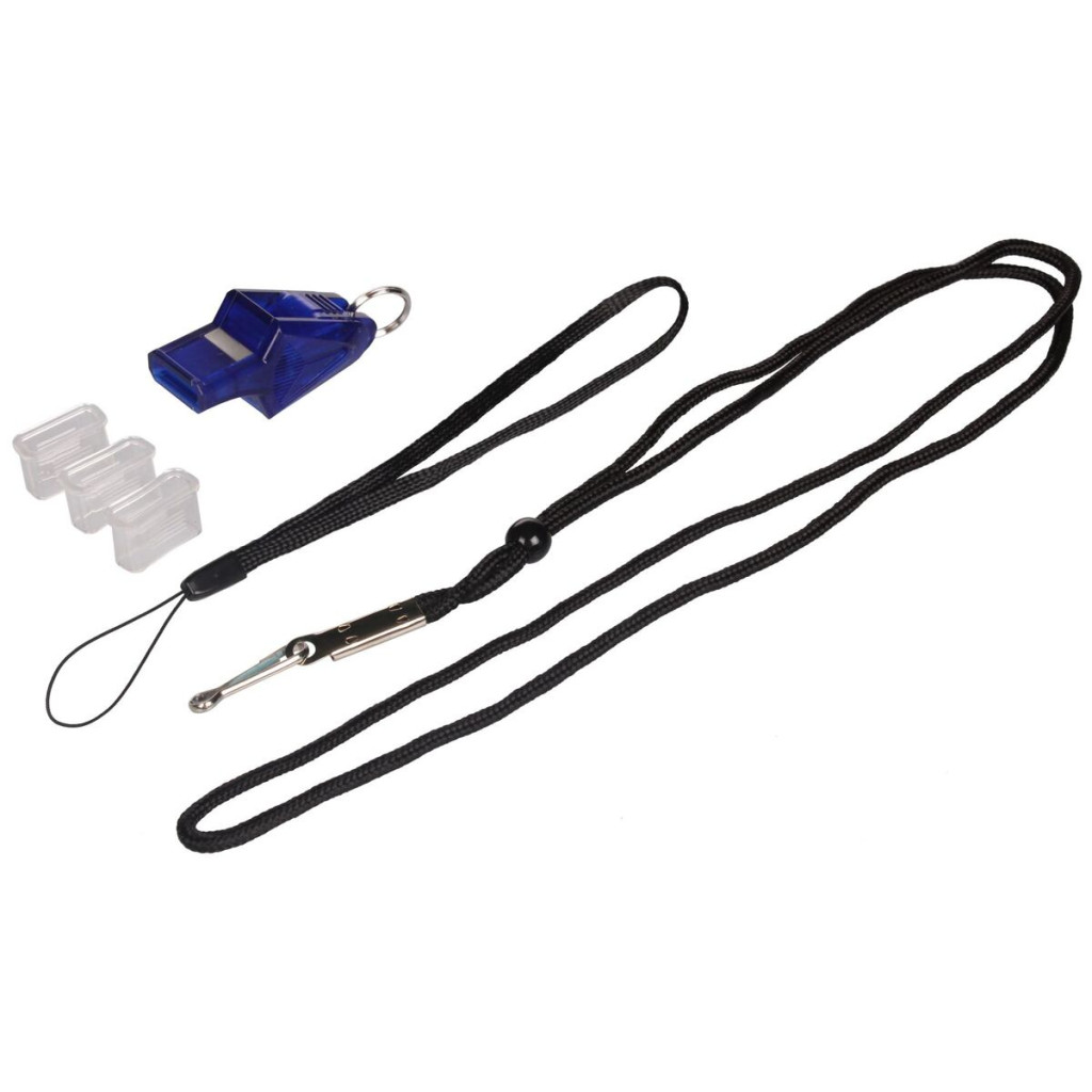 High frequency plastic whistle for referees and coaches. Including cords hanging and mouthguards.