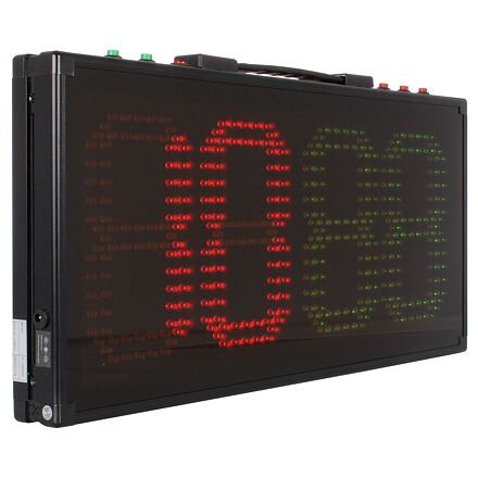 A kétoldalas elektronikus Merco Double LED tábla a játékosok cseréjének és a labdarúgó-mérkőzések alatt a beállított idő jelzésére szolgál. A kétoldalas tábla két sorban elhelyezett LED-ekkel ellátott kijelzővel rendelkezik, amelyek négy mezőt (2 piros / 2 zöld) alkotnak, mindegyik 18 cm magas és 10 cm széles. A táblába integrált lítium akkumulátor LED-eket tartalmaz, amelyek akár öt órán át is elegendő energiát biztosítanak. A tábla könnyen kezelhető a kis, 2,6 kg-os súlyának köszönhetően. - pontszám 0 - 99 - 56 x 5 x 27 cm - tápellátás: 240V adapter - 2,6 kg