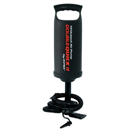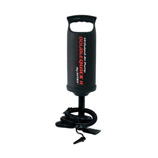 A Double Quick II kézi pumpa flexibilis tömlővel használható felfújásra és leeresztésre. A csomagolás három toldódarabot is tartalmaz. A pumpa mérete 36 cm.