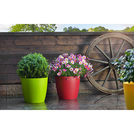 Műanyag díszes virágcserép fényes kivitelben. Több színváltozatban és átmérőben.