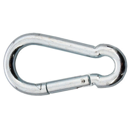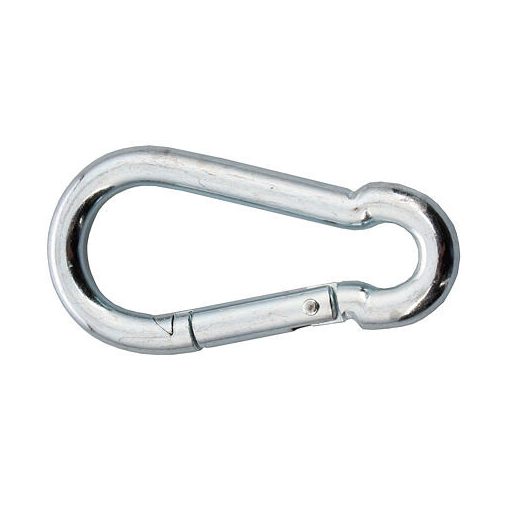 Carabiner for universal use. Made of stainless steel, with a maximum load capacity of up to 400 kg.