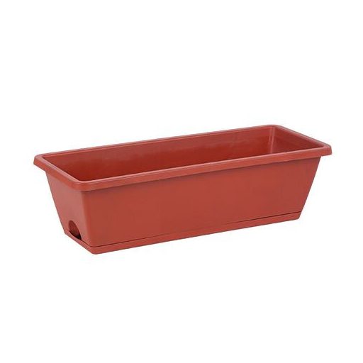 Műanyag virágláda tálcával. Méretek: 49 x 18 x 14 cm.