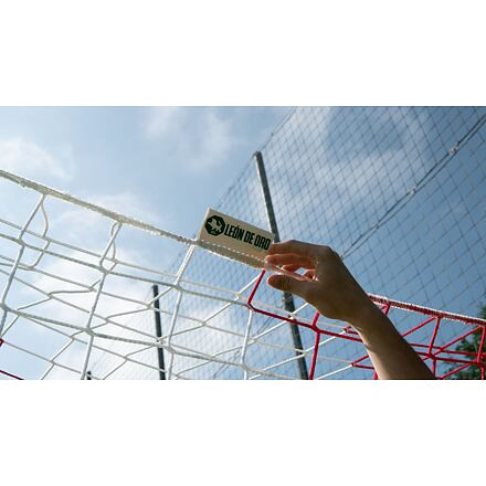A León de Oro kiváló minőségű futballhálókat gyárt, amelyek megfelelnek az EN 748 szabvány összes követelményének. Hálóikat nemzetközi labdarúgó-versenyeken használják (2010-es dél-afrikai világbajnokság, 2014-es brazil, 2018-as oroszországi labdarúgó-bajnokság, 2016-os franciaországi Európa-bajnokság). A Football A11 M100 futballháló csomómentes, nagy szakítószilárdságú, UV-stabil és rothadásálló polipropilénből készült. Ez a háló 7,5 x 2,5 x 2 x 2 m méretű kapukhoz készült. A háló iskolák és futballklubok számára, edzésekre és versenyekre alkalmas. Paraméterek: - doboz alakú kapuk: 7,5 m hosszú, 2,5 m magas, 2 m felső magasság, 2 m alsó magasság - anyag: PP - vastagság: 4 mm - hálószemméret: 100 mm - minden teljesítményszintű versenyhez