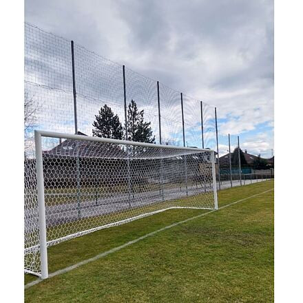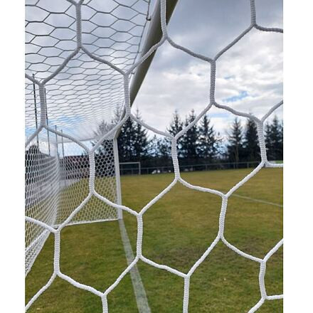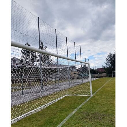 Minőségi fociháló minden teljesítményszintű versenyre. Hatszögletű hálóforma, 7,5 x 2,5 x 2 x 2 m.