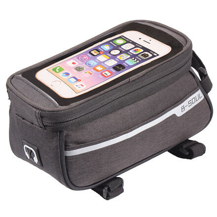 Legyen kéznél okostelefonja és egyéb személyes tárgyai kerékpáros túrák során a praktikus B-SOUL Front 1.0 segítségével. A könnyű kerékpártartó táska speciális rekesszel rendelkezik egy okostelefon számára, amelynek átlója legfeljebb 190 mm (7,5 hüvelyk), és felső PU irányzékkal rendelkezik. A táska továbbá egy cipzáras rekeszt is kínál egyéb személyes tárgyaknak, például pénztárcának, kulcsoknak stb. A táska külső méretei 210 x 90 x 105 mm. A táska két kis oldalsó zsebbel rendelkezik, amelyek gyors hozzáférést biztosítanak az apró tárgyakhoz a fő rekesz mellett, sőt, fejhallgató-kimenetet is talál a táskában. A három tépőzáras pántnak köszönhetően a táska könnyen rögzíthető a kerékpártartóhoz. A B-SOUL modern kerékpáros felszerelései kényelmesebbé teszik a kerékpáros túrákat.