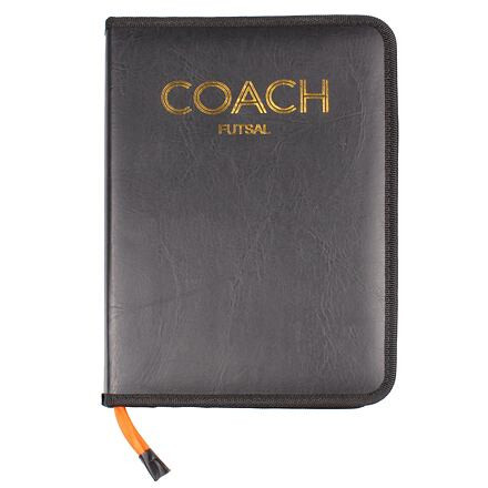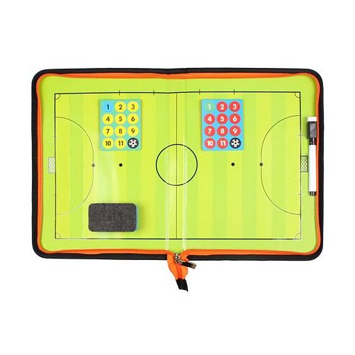 Összecsukható taktikai tábla futsal edzőknek és futsal kluboknak. Könnyen hordozható, műbőr borítással, kihajtva mérete 42 x 28 cm.