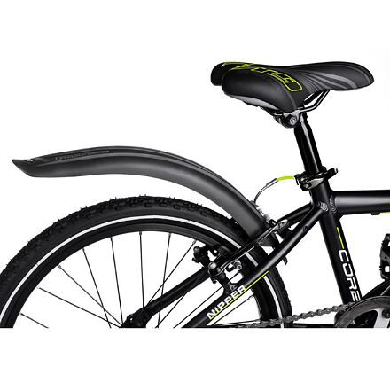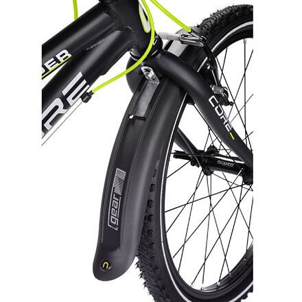Az One Gear 1.1 sárvédőkészlet első és hátsó kerekekhez 20"-os kerekekhez is alkalmas, akár V-fékekhez is. A sárvédők könnyű és tartós anyagból készültek, és a felhelyezésük csak egy pillanatot vesz igénybe. Az első sárvédő teljes hossza 35 cm, a hátsó sárvédő hossza 43 cm, mindkettő súlya pedig körülbelül 0,2 kg. A One Gear 1.1 sárvédőkészletnek köszönhetően nem kell aggódnia a piszkos és vizes ruhák miatt. - 20"-os kerekekhez - szélesség 66 mm - anyaga műanyag PP - V-fékekhez is alkalmas - egyszerű összeszerelés