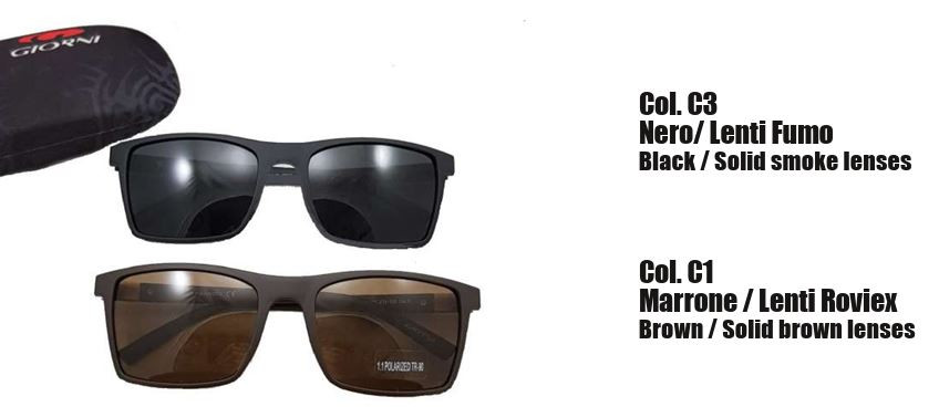 Giorni napszemüveg polarizált lencsékkel, TR90 (szén- és nylonszál) extra könnyű, formatartó szemüvegkerettel egyenesen Olaszországból.