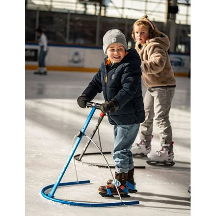 Jégkorcsolyázáshoz kezdőknek szánt edzőeszköz. Összecsukható alumínium szerkezet, állítható magasság.