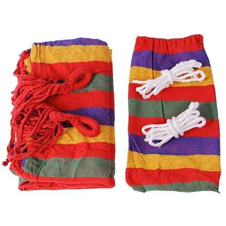 Függőágy a minőségi pihenéshez a kertben vagy a természetben. 100% pamutból készült, maximális teherbírása 100 kg.