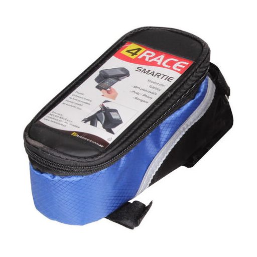 4RACE kormánytáska elülső felső zsebbel okostelefonnak Könnyen rögzíthető 3 tépőzárral Megerősített alsó rész Puha bélés Vízálló anyag Átlátszó felső zseb Fényvisszaverő elemek az oldalakon Minden okostelefonhoz használható Méret: 17x8x8cm