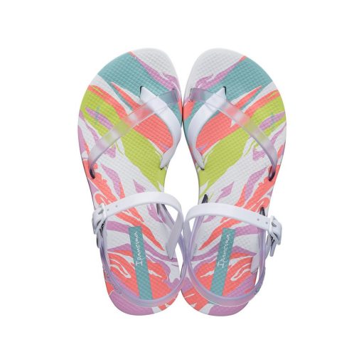 Ipanema Fashion Sandal VII Kids gyerek szandál fémcsatos bokapánttal. Két különböző talpmintával és vidám nyári színekben kapható. Keresztpántos, lábujjközes fazonú gyerek szandál.