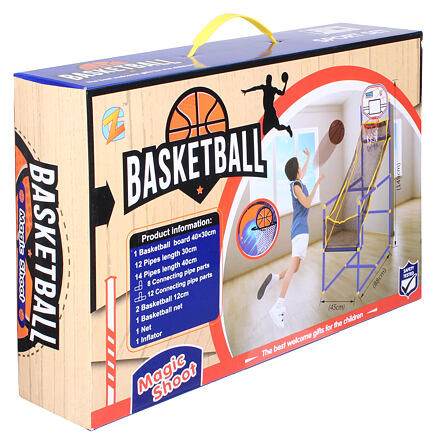 Minden fiatal kosárlabda-rajongó biztosan értékelni fogja a Jordan kosárlabda-készletet, amelyet akár a szobájában is összeszerelhet. A 149 x 88 x 45 cm-es kosárlabdapalánkot műanyag csövek és csatlakozók segítségével rövid idő alatt összecsukhatja. A készlet nagy előnye az alsó háló, amely a kosárba dobott sikeres és sikertelen labdák során is felfogja a labdákat. A készlet elsősorban 3 éves kortól és óvodások számára készült, de a felnőttek is gyakorolhatják a dobás pontosságát, akár otthon, akár az irodában. A csomag két kis kosárlabdát tartalmaz, így elkezdődhet a verseny a barátokkal, akik több kosarat dobnak egy bizonyos idő alatt! Paraméterek: a megépített kosár méretei: 149 x 88 x 45 cm súly: 1,5 kg A csomag tartalma: 12 db rövidebb cső - hosszúság: 30 cm, átmérő: 2,5 cm 14 db hosszabb cső - 14, hosszúság: 40 cm, átmérő: 2,5 cm 12 + 8 db összekötő cső 1 db kosárpalánk 2 db kosárlabda - átmérő: 12 cm 1 db pumpa 1 db háló a kosárban 1 db labdaháló