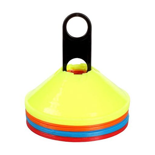 19,5 cm átmérőjű és 5 cm magas Jumbo jelölőkorongok lágyított műanyagból készültek, így ellenállnak a rájuk való lépésnek vagy más deformációnak. A különböző színeknek köszönhetően színes és ötletes edzőpályát hozhat létre. A tetején lévő kivágásokba 25 mm átmérőjű rudakat helyezhet, így akadályokat is elhelyezhet a pályán. A készlet 32 darab 4 színre osztott korongot és egy műanyag állványt tartalmaz a könnyű hordozhatóság érdekében.