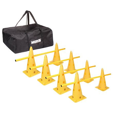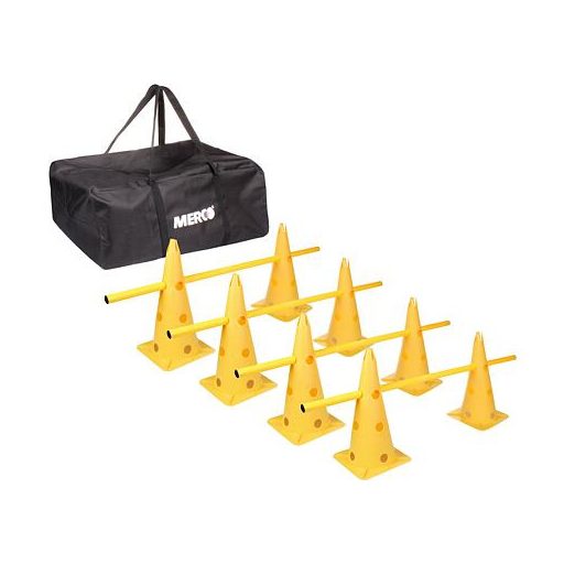 Merco Jump 4HS38 agility szett egy praktikus eszköz az edzőteremben vagy a szabadban történő edzéshez. Az agility akadályok minden sportág, klub és iskola sportolói számára alkalmasak. Az agility szettnek köszönhetően javíthatod az erőnlétedet, hatékonyan edzed az alsó és felső végtagok sebességét és koordinációját. A Merco Jump 4HS38 alap edzőszett nyolc lyukas, 38 cm magas bóját, valamint négy kétrészes, összecsukható rudat tartalmaz, amelyek összecsukva teljes hossza 1 m, átmérője pedig 25 mm. A szett tartalmaz egy praktikus poliészter táskát is kézpántokkal a könnyű hordozhatóság és az edzések közötti tárolás érdekében. Jump 4HS38: - 8 db 38 cm-es lyukas bója - 4 db kétrészes összecsukható rúd - polipropilén, poliészter - szett súlya: 2,4 kg - praktikus táskát tartalmaz