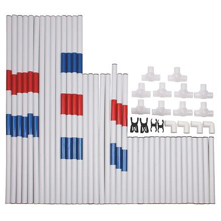 Készíts minőségi akadálypályát kutyádnak a Kit 1 agility akadálykészlettel! A készlet versenyekre való felkészülésre is alkalmas. A csomag 38 különböző hosszúságú rudat, 18 összekötőt és egy hordtáskát tartalmaz. A tengelykapcsolókkal és a rudakkal bármilyen akadálypályát létrehozhatsz. Az akadályok kisebb és nagyobb kutyafajták számára egyaránt alkalmasak. A teljes készlet praktikus csomagolásban található a könnyű tárolás és hordozás érdekében. Kezdd el az edzést, és hozd formába kutyádat ezzel a praktikus agility akadálykészlettel! Csomag tartalma: fehér rúd 90 cm - 4 db két csíkos rúd 90 cm - 6 db három csíkos rúd 90 cm - 4 db két csíkos rúd 60 cm - 2 db két csíkos rúd 65,5 cm - 1 db fehér rúd 60,5 cm - 5 db fehér rúd 30 cm - 16 db ötutas tengelykapcsoló - 10 db kétutas tengelykapcsoló - 4 db nagy fekete tengelykapcsoló - 2 db kis fekete tengelykapcsoló - 2 db Hordtáska - 1 db Paraméterek: csomag méretei: 95 x 30 x 15 cm anyaga: műanyag Csomag súlya: 3,3 kg
