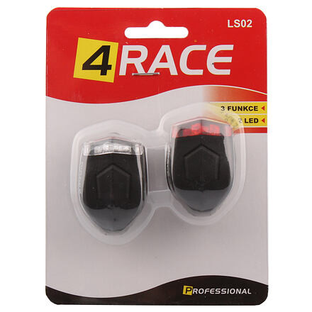 4Race LS02 praktikus kisméretű kerékpárlámpa-készlet ideális választás városi használatra a jó láthatóság érdekében. A kormányhoz és a nyeregcsőhöz való rögzítés egyszerű gumikampókkal történik. A lámpák szuperfényes fehér LED-ekkel (2 x 0,5 W) és szuperfényes piros LED-ekkel rendelkeznek. Lehetőség van folyamatos világítás és lassú vagy gyors villogás üzemmód között választani. Ezek a kerékpárlámpák műanyag és gumi kombinációjából készültek. A csomag 2 db CR2032 elemet tartalmaz.