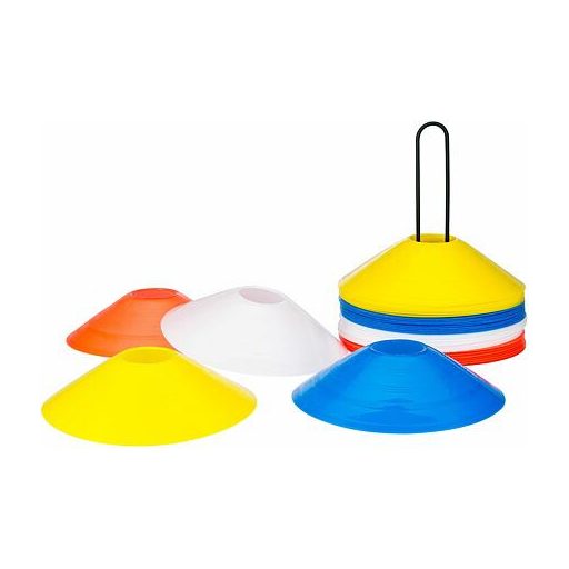 4 x 10 darabos edzéskorong készlet. Rugalmas PE anyagból készült, praktikus állvánnyal.