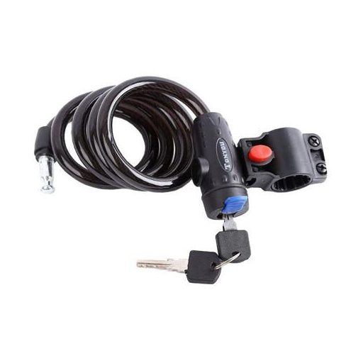 Alap kerékpárzár megfizethető áron. Hossz 120 cm, átmérő 11 mm, 2 kulcsot és egy lakattartót tartalmaz.