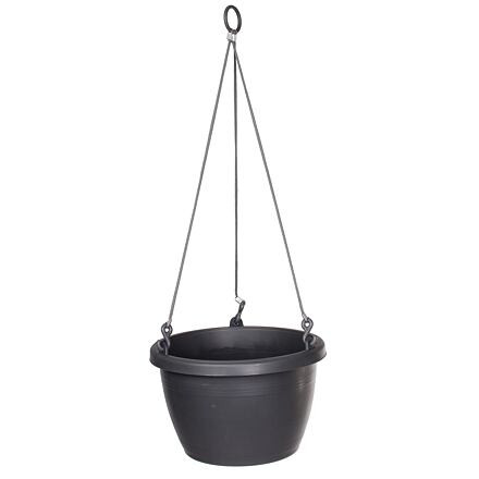 Műanyag függő virágcserép, amely alkalmas lakásba, erkélyre, kerti pavilonba és pergolába.