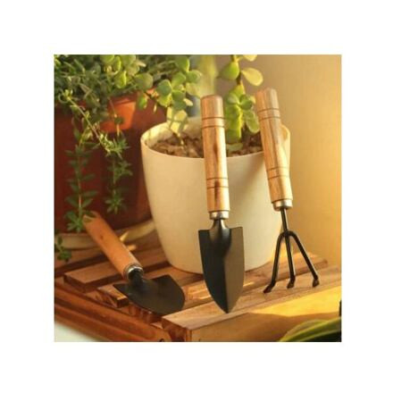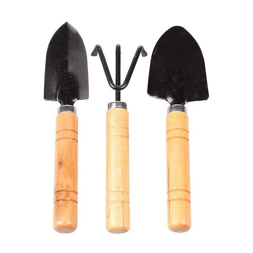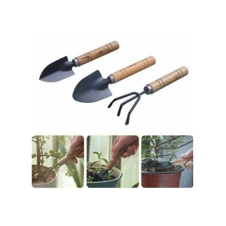 Maximum 17 cm hosszú kis kerti szerszámkészlet virágágyások és virágcserepek talajának lazításához.