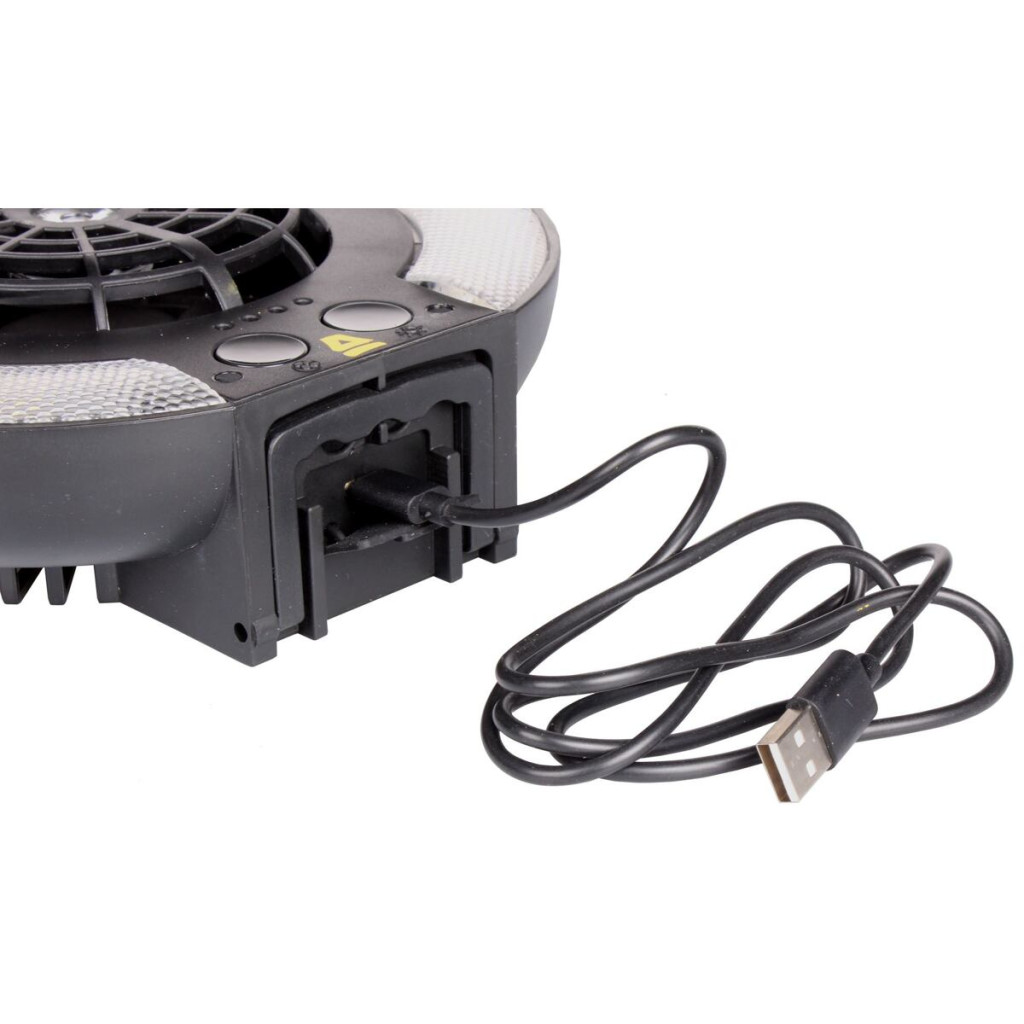 The ultimate handy gadget for camping: the Abbey Camp Monserrat LED Lamp with fan. With this multifunctional lamp you not only have enough light, you can also use it as a fan and power bank! The LED lamps consist of 4 LED lights and you can use the lamp in different modes; dimmed light, bright light, mosquito repellent light and a spotlight. With the dimmed light you can make it really cozy while camping. The bright light provides functional lighting and good visibility. In addition, there is a yellow colored anti-mosquito mode which keeps mosquitos away. You can use the spotlight as a flashlight in the dark, but also as a reading light. You can use the fan in different modes as well. In addition to the light and the fan, this product also functions as a power bank or charger. By means of a USB-c input you can easily charge different devices. The fan light is very practical, you can hang the camping light by using the plastic hook on the back and you can put it upright on your desk, table or counter as well. It’s not only suitable to use while camping; take the fan to the office, workplace or all kinds of other places next to the campsite. The lamp is splash-proof and has a built-in Li-ion battery. The camping lamp is USB rechargeable and comes with a charging cable. - material: ABS