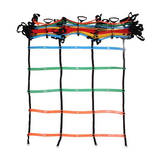 4, 5 és 9 m. A legnagyobb agility létra három sorral, két különböző hosszúságban. Könnyen állítható színes fokok fogantyúkkal.