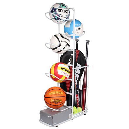 Közepes méretű állvány sporteszközökhöz és játékokhoz. Praktikus eszköz otthonra és sportklubok számára.