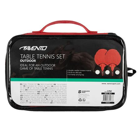 Az Avento Outdoor 46TZ asztalitenisz szett kifejezetten kültéri játékra készült. A szett két tartós PP anyagból készült ütőt tartalmaz, ami vízállóvá teszi őket, így rossz időben is játszhatsz vele. Az anatómiai fogantyúk jobb fogást és irányítást biztosítanak játék közben. A csomag három ABS labdát is tartalmaz, klasszikus, 40 mm átmérőjűekkel. Mindez egy praktikus táskában érkezik, ami megkönnyíti a teljes szett hordozását és tárolását. - asztalitenisz szett kültéri használatra - 2 PP asztalitenisz ütő anatómiai fogantyúkkal - 2 mm-es gumi felső és alsó réteg az extra irányítás érdekében - 3 ABS labda, 40 mm átmérőjű - csomag méretei: 26 x 16 x 5 cm - csomag súlya: kb. 0,45 kg