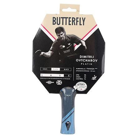 Butterfly Ovtcharov Platin asztalitenisz ütőt haladó és klubjátékosok számára tervezték, akik egy nagyszerű pörgést és sebességet kínáló ütőt keresnek. A Panasia*** borítás támadójátékot biztosít, és magas fokú kontrollt biztosít. Kellemes Ergo Grip tartó anatómiai formában a rezgések maximális átviteléért a tenyérbe. Ez a modell ITTF által jóváhagyott. Pörgés: 90/100 Sebesség: 90/100 Vezérlés: 95/100 Keménység: Közepes Szivacs: 1,7 mm Nyél: anatómiai Súly: 165 g ITTF: Igen