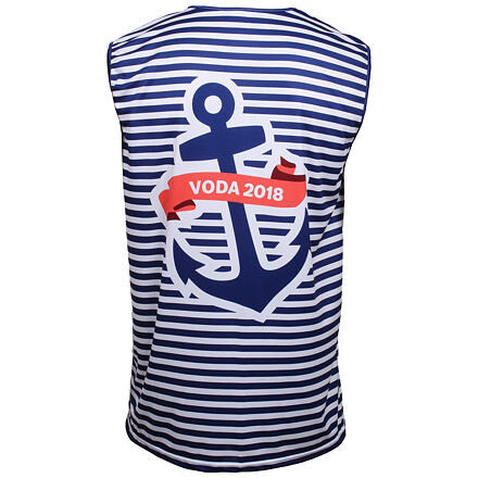Sötétkék ujjatlan póló szublimációs nyomtatással. Ideális vitorlázóknak vagy partikra.