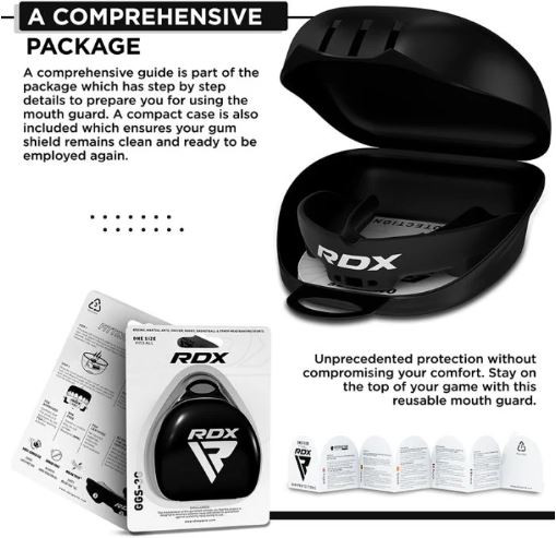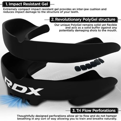 Ha a száj védelméről van szó, ügyeljen arra, hogy az fogvédő tökéletesen illeszkedjen – úgy, hogy ne legyen helye semmilyen ütésnek, ami komoly sérülést okozhatna. Az RDX géles fogvédő biztosítja, hogy fogai biztonságban legyenek, mivel a fogvédő pontosan a fogak formájához idomul.
