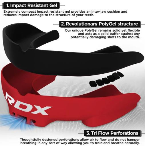 Ha a száj és a fogak védelméről van szó, ügyeljen arra, hogy a fogvédő tökéletesen illeszkedjen – úgy, hogy ne legyen helye semmilyen ütésnek, ami komoly sérülést okozhatna. Az RDX géles fogvédő biztosítja, hogy fogai biztonságban legyenek, mivel a fogvédő pontosan a fogak formájához idomul.