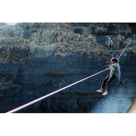 slackline egyensúlyozás, ugrás vagy bármilyen mozgás egy hevederen, amelyet két pont, többnyire két fa között rögzítenek. Anyagának köszönhetően a heveder rugalmasabb, mint a járáshoz használt kötél. Merco Ranger Slackline: - 1x fő heveder szélessége 40 mm (15m / 20m) - 1x tanulóheveder szélessége 40 mm (15m / 20m) - 2x szorítóracsni - 2x favédő - 1 segédheveder szélessége 40 mm és hossza 150 mm A Merco Ranger Slackline egyensúlyozó heveder kezdő és amatőr túrázók számára alkalmas. Kapsz egy edzőhevedert is, amely segít a kezdetekben. Ezt a hevedert az egyensúlyozó heveder fölé kell rögzíteni, és kézzel történő tartásra szolgál. A nagyobb biztonság érdekében javasoljuk, hogy a hevedert maximum 50 cm-rel a felszín fölé rögzítsd, és matracot is elhelyezhetsz a heveder alatt. A Ranger Slackline egyensúlyozó heveder egyszerűségében és sokoldalúságában tűnik ki, és rendkívüli eszköz a koordináció fejlesztéséhez.