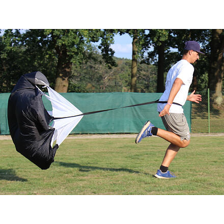 Merco Resistance edzőejtőernyő segít javítani az alsó testrész erejét és sebességét a progresszív ellenállásnak köszönhetően. Minél gyorsabban futsz, annál nagyobb az ellenállási erő. A Merco Resistance ejtőernyő használatával javíthatod a lépések hosszát és gyakoriságát is, ami maximális sebességhez vezet. A Merco Resistance ejtőernyő belsejében hálós panelek találhatók, így a hevederek nem kuszanak össze. A Merco Resistance ejtőernyő vízálló poliészterből készült, átmérője 140 cm = ellenállás kb. 14 kg, és 160 cm hosszú poliészter hevederrel rendelkezik, amelyet tépőzár segítségével könnyen a derekadra rögzíthetsz (80-100 cm derékbőség). A Merco Resistance ejtőernyő ideális edzőeszköz minden sportoló számára, aki szeretné javítani az alsó testrészének sebességét és erejét.