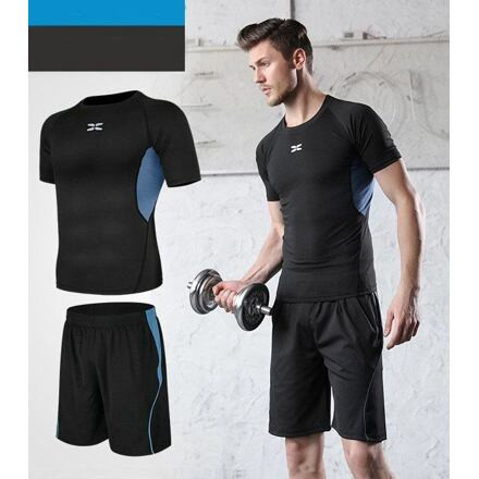 Férfi sportpólókból és rövidnadrágokból álló szett. Futáshoz és fitneszhez alkalmas.